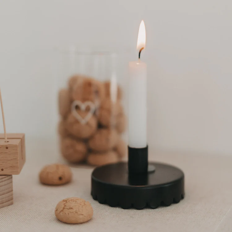 Kleiner Hinweis: Bitte achte darauf, die passende Kerzengröße zu verwenden. Unsere Mini-Stabkerzen sitzen perfekt und sicher in der dafür vorgesehenen Vertiefung.