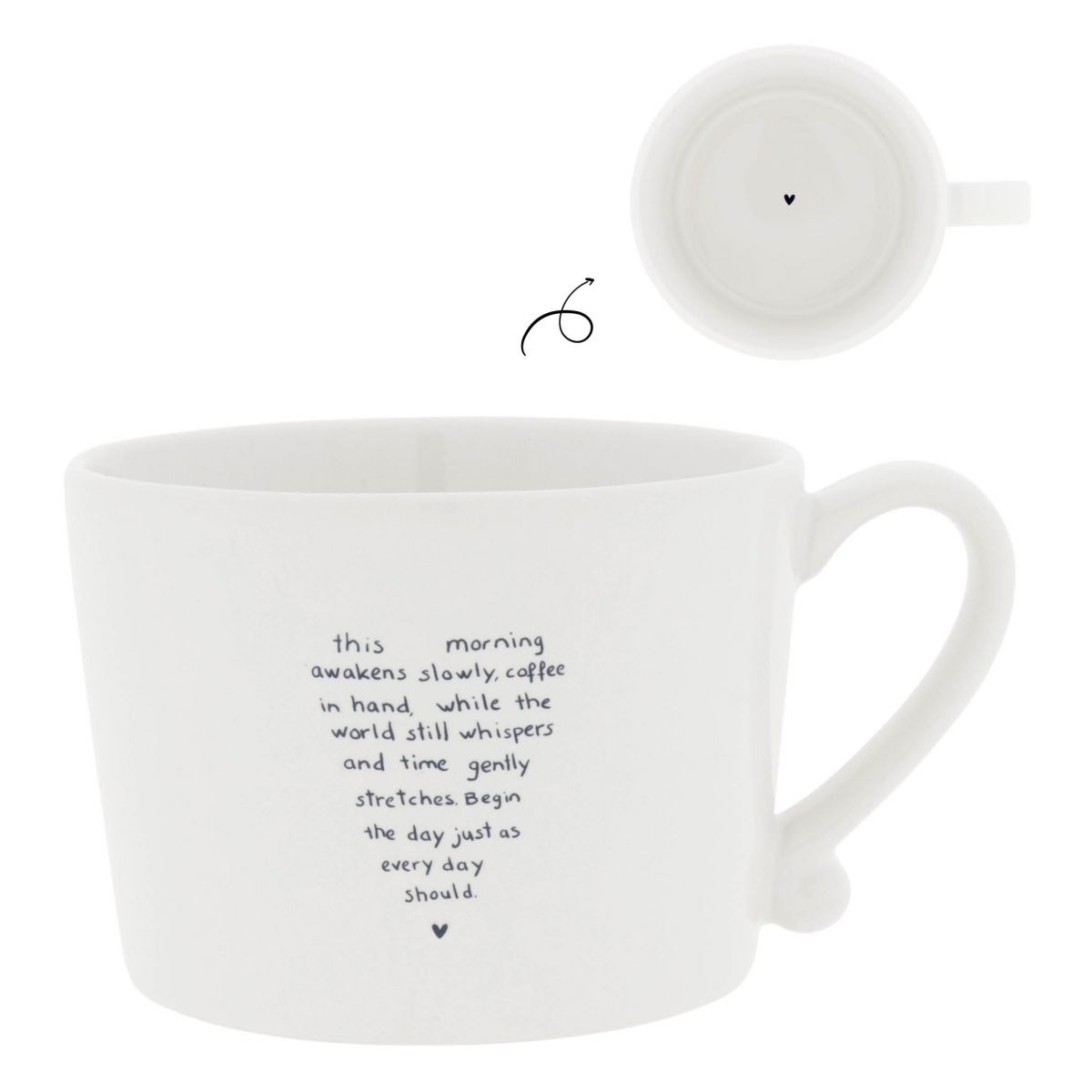Inspirierende Botschaft: Der feine, schwarze Schriftzug erinnert dich daran, den Morgen langsam und bewusst zu beginnen.