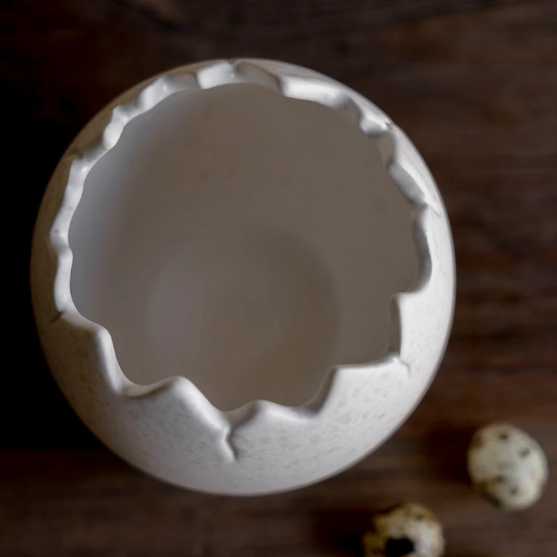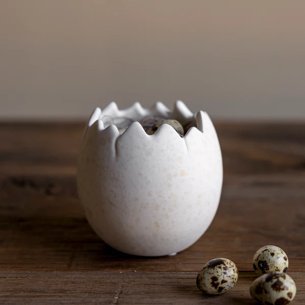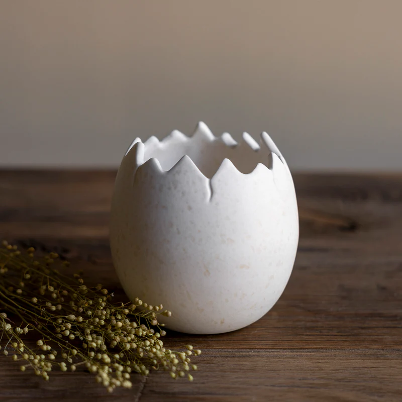 Hinweis zur Pflege: Da die Keramik unglasiert und matt ist, empfehlen wir bei einer direkten Bepflanzung, eine kleine Folie einzulegen oder das Ei nur als Übertopf zu nutzen, um die Oberfläche vor Feuchtigkeit und Erdflecken zu schützen.