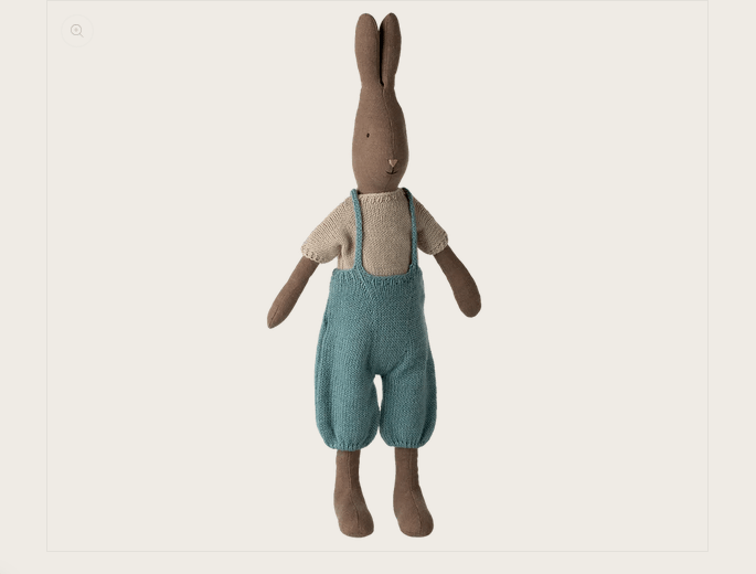 Suchst du einen treuen Freund, der genau die richtige Größe zum Mitnehmen und Kuscheln hat? Das Maileg Kaninchen in Größe 3 ist ein zeitloser Klassiker, der durch seinen warmen braunen Farbton und die hochwertige Verarbeitung aus reinem Leinen besticht. Mit seinen 49 cm ist er groß genug für tolle Rollenspiele und gleichzeitig handlich genug für jedes Abenteuer.