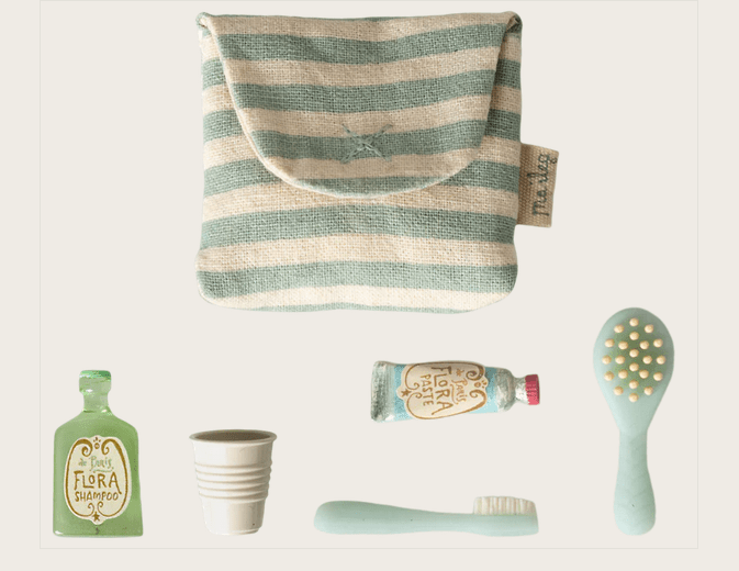 Auch kleine Mäuse müssen sich nach einem langen Tag voller Käse-Häppchen und Abenteuer die Zähne putzen! Mit diesem bezaubernden Zahnbürsten-Set wird die Abendroutine im Mäusehaus zu einem echten Highlight. Verpackt in einer schicken, blau oder rot gestreiften Tasche, ist alles dabei, was deine Mäuse für ihr Badezimmer oder die nächste Reise brauchen.